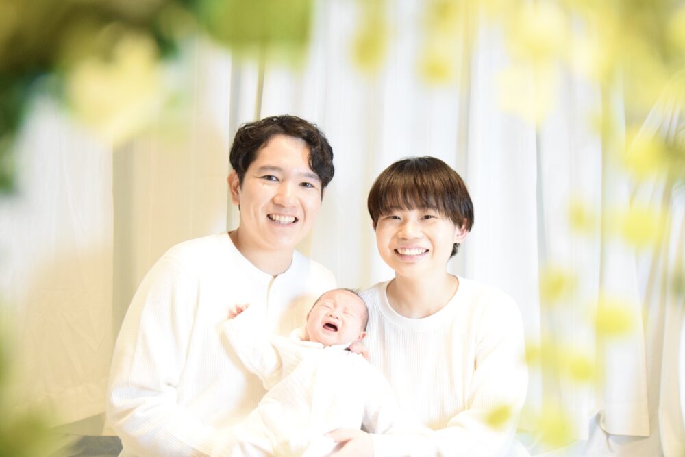 この世界に初めて触れた赤ちゃんを、やさしく、そして力強く包み込むおふたりの笑顔が印象的です♪