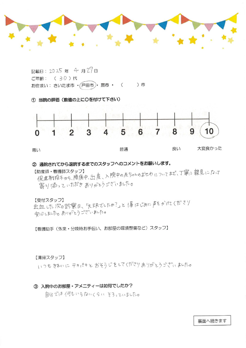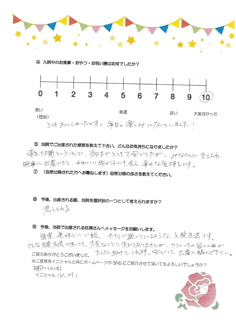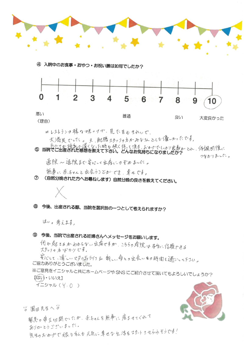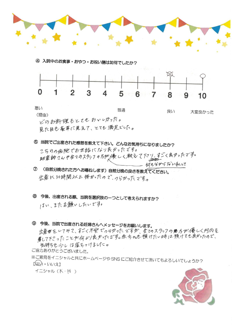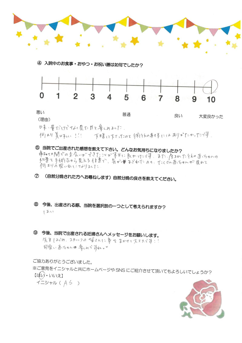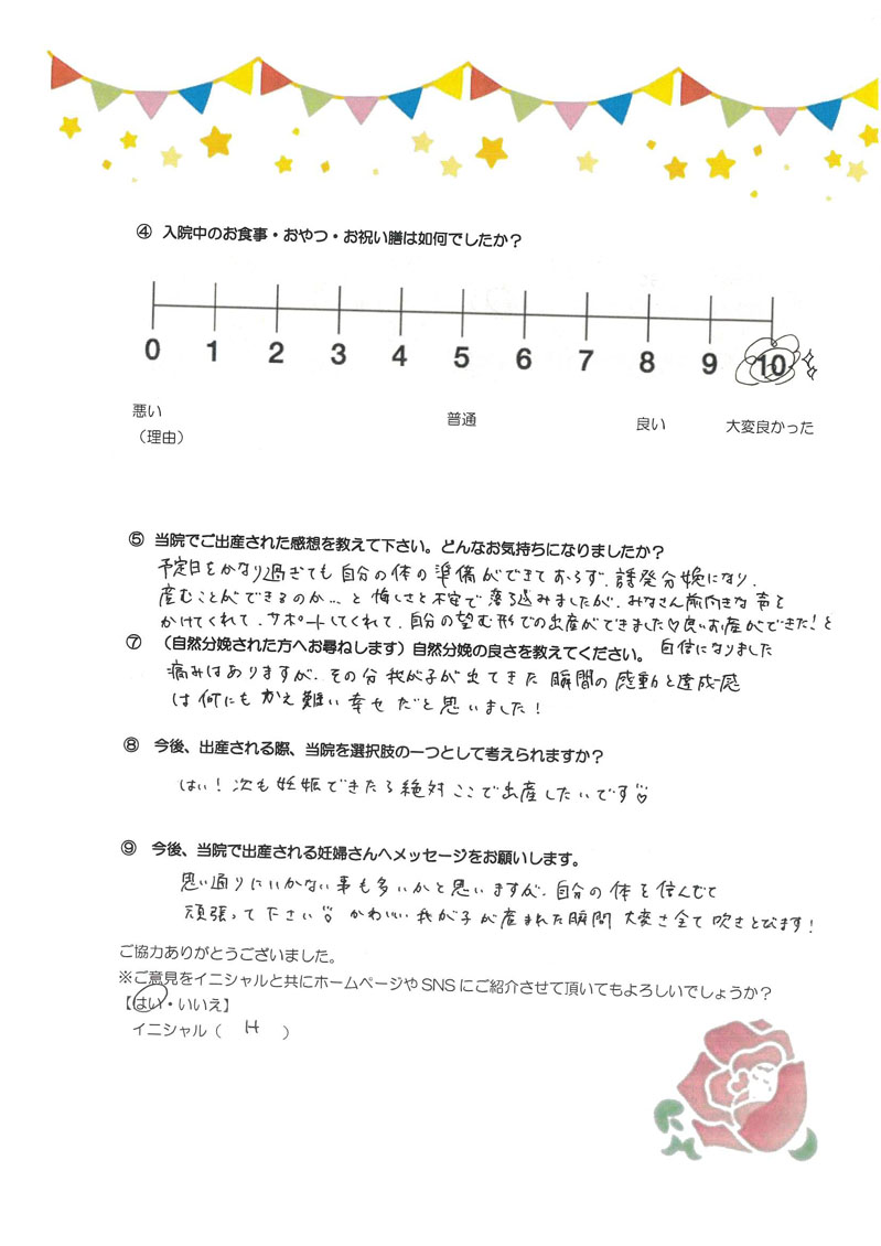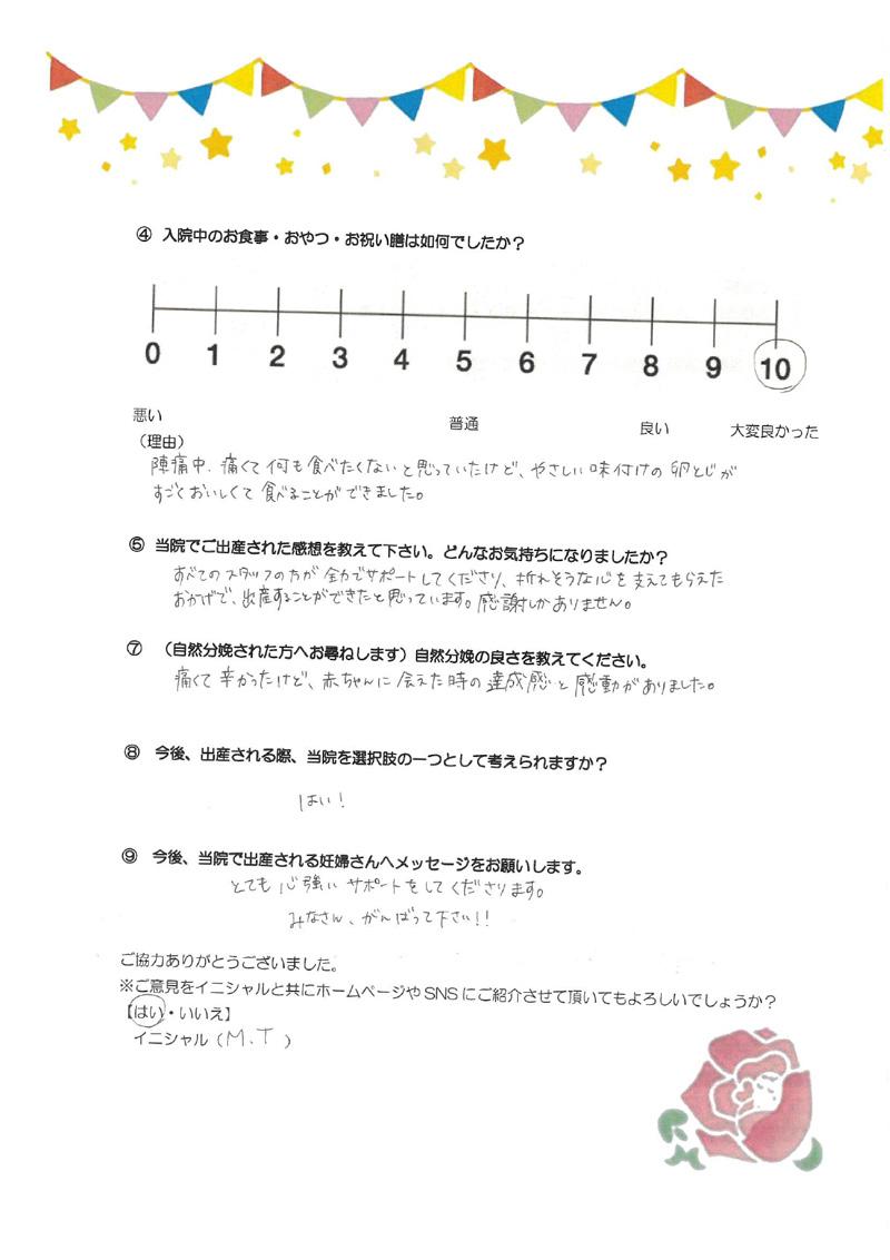 これから人生の大イベントを迎える方にとって、当院で出産された先輩ママ様たちの感想が参考になれば幸いです。
