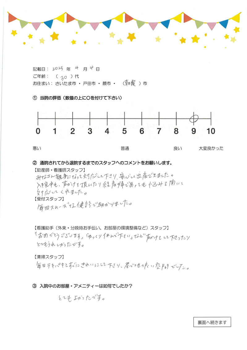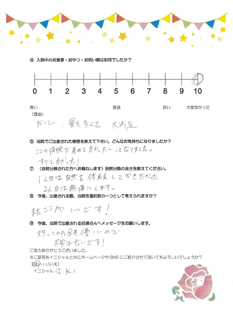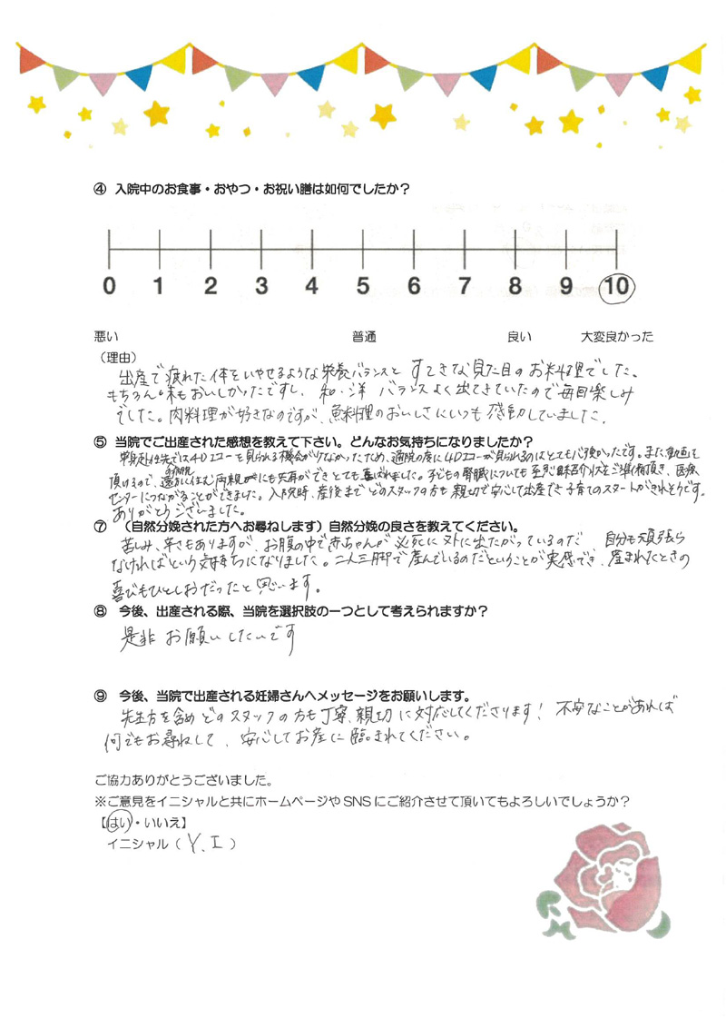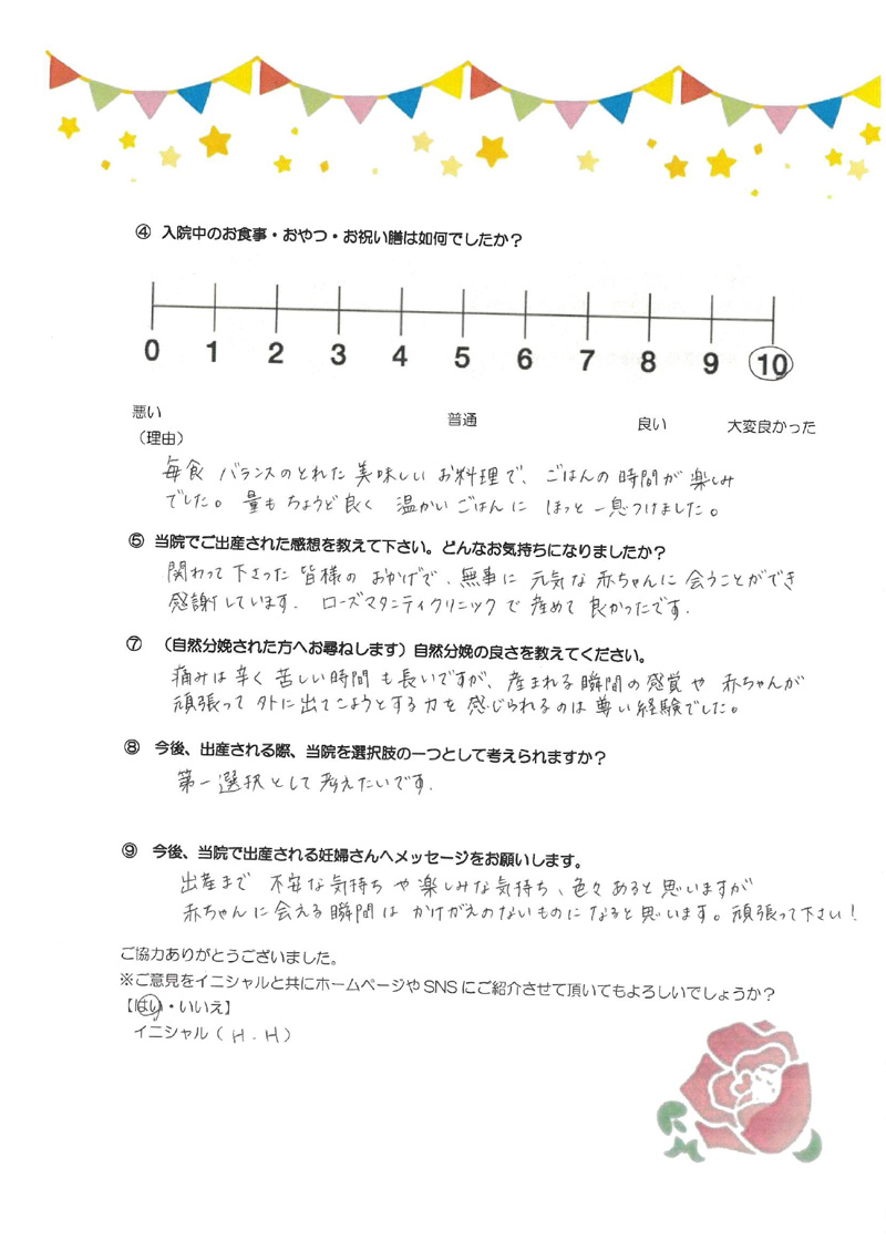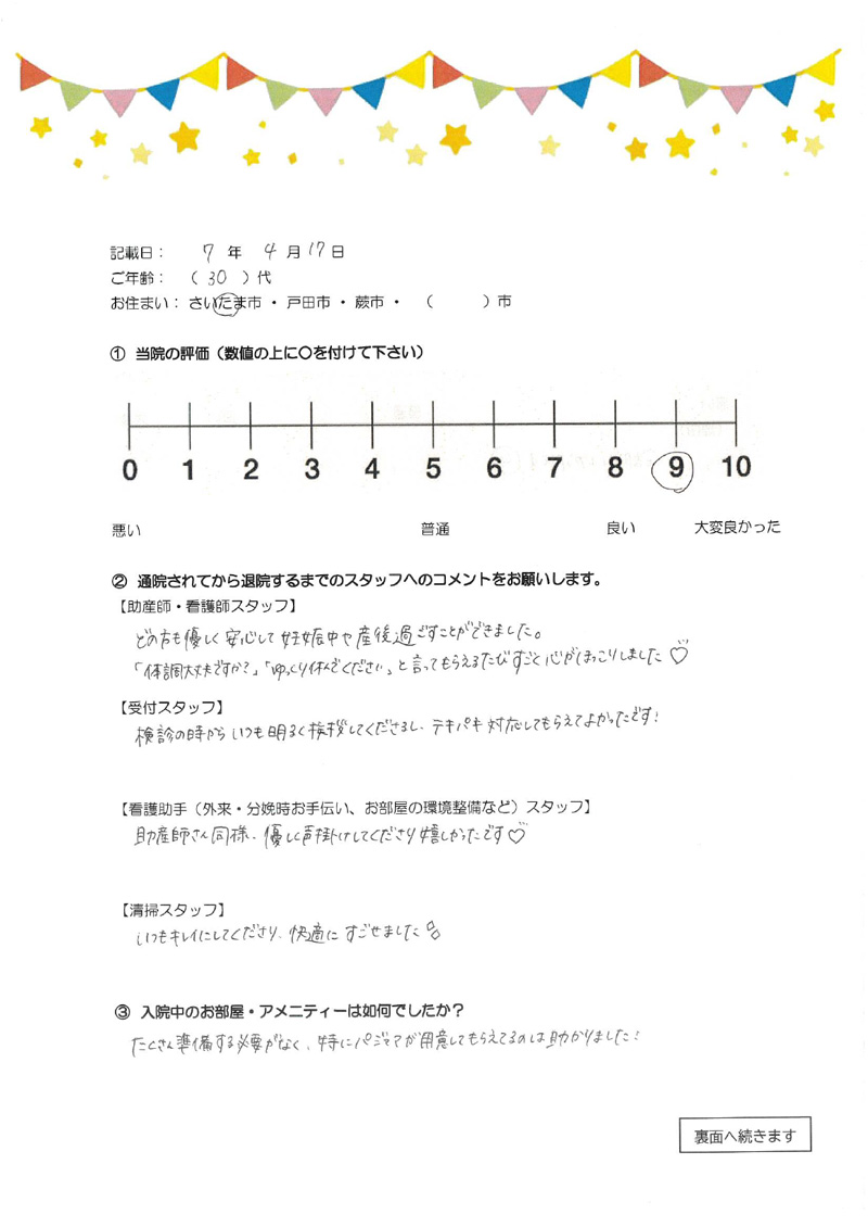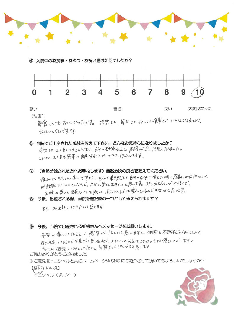 これから人生の大イベントを迎える方にとって、当院で出産された先輩ママ様たちの感想が参考になれば幸いです。