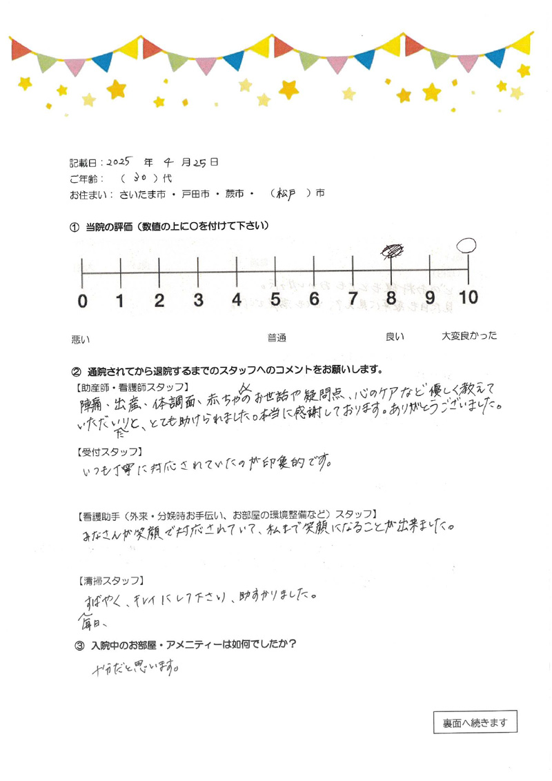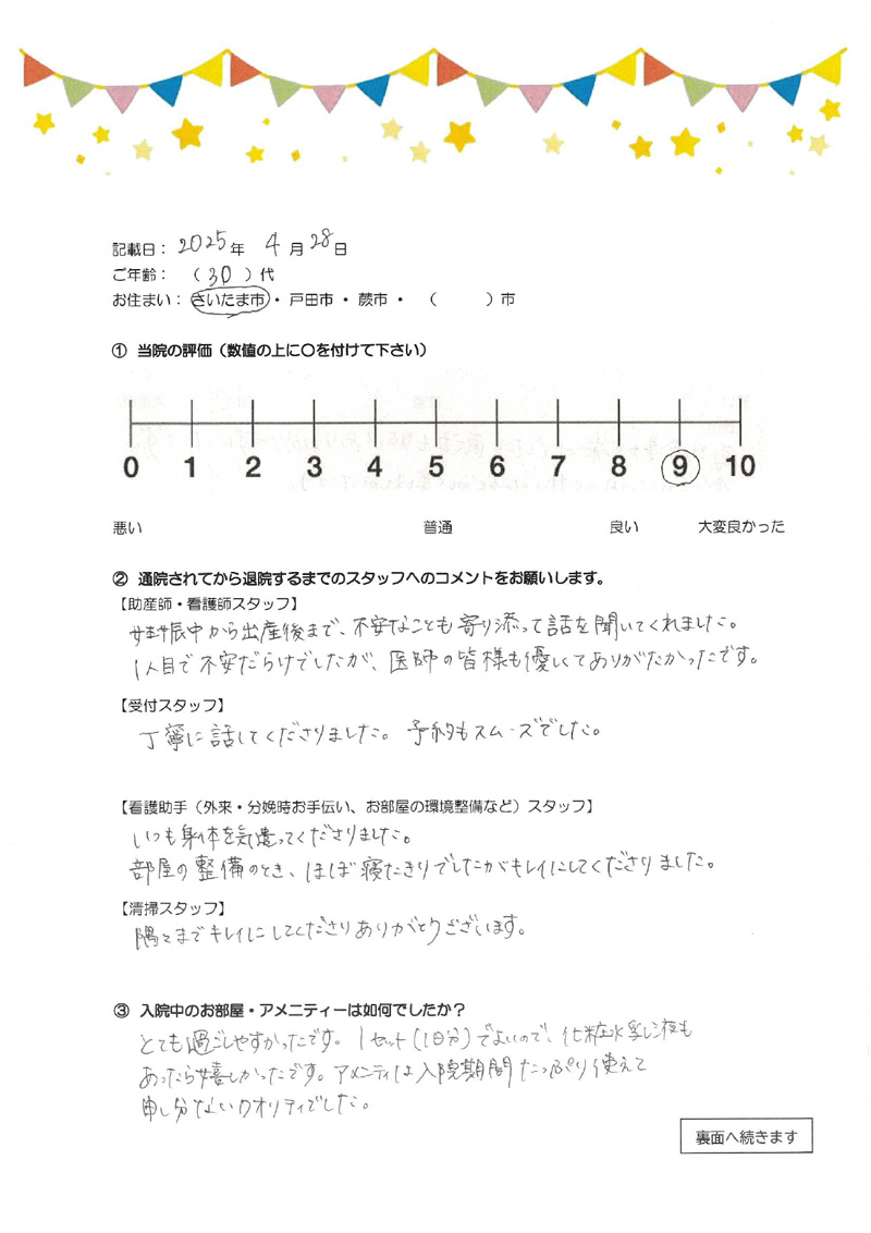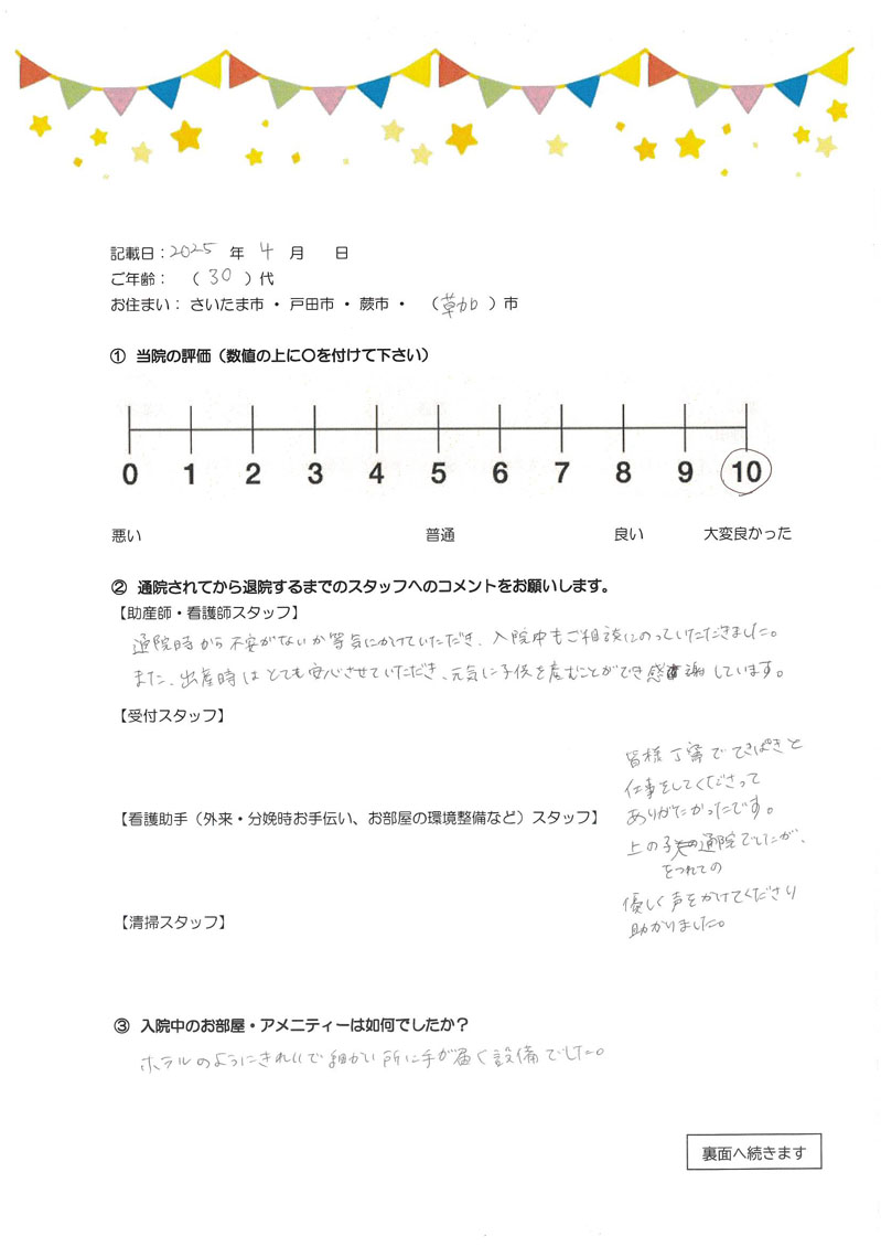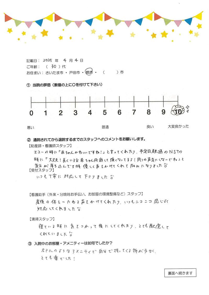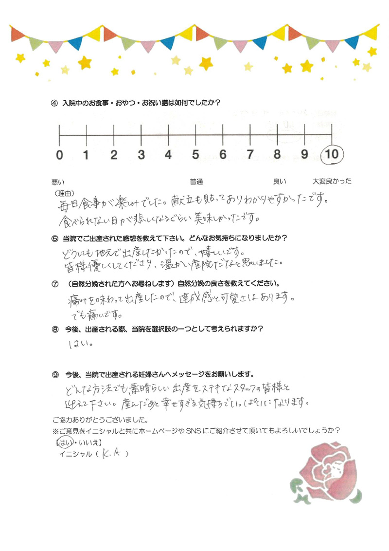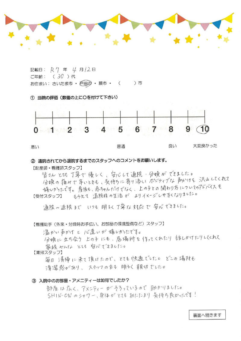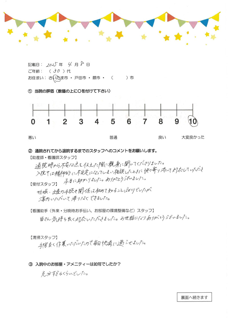 これから人生の大イベントを迎える方にとって、当院で出産された先輩ママ様たちの感想が参考になれば幸いです。